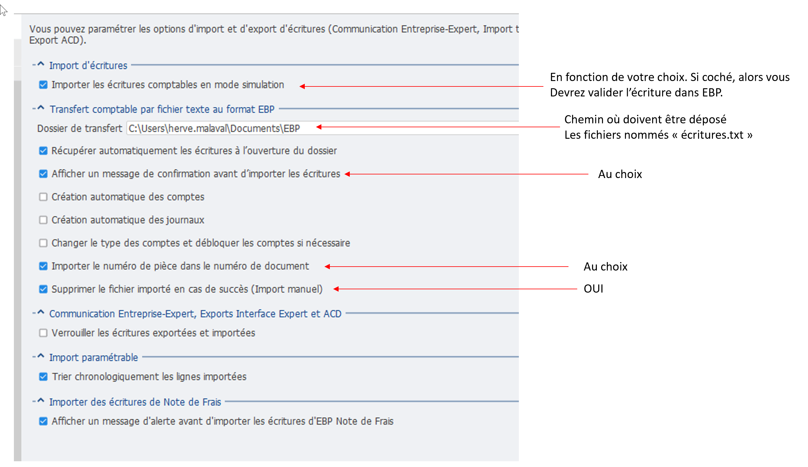 EBP PRO - Configuration de EBP pour import écriture auto